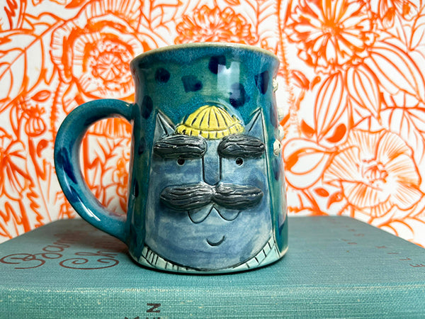 3D salty sailors with stunning eyebrows occupy both sides of this handmade porcelain mug! The barnacles are hand-sculpted porcelain (no barnacles were harmed in the making of this mug!).