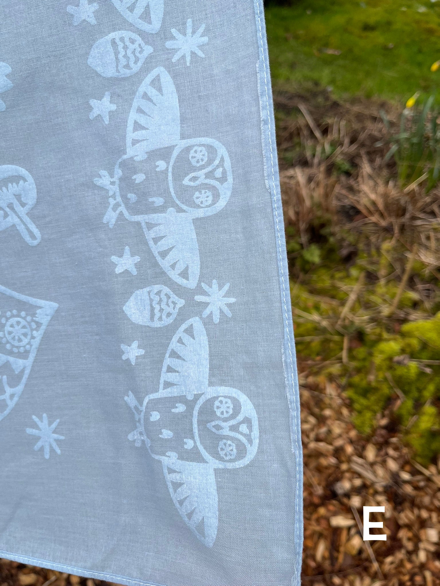 These bandanas are 100% cotton and have been made with water-based fabric ink. They have been heat-set and washed.