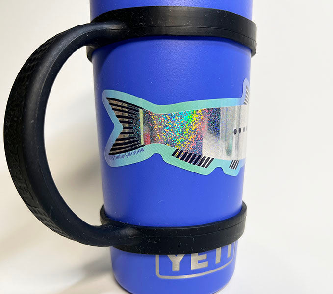 Listing is for one "outdoor durable" (water resistant and fade resistant for 12-18 months), glitter polypropylene sticker, 5" x 1.5". Easy-peel backing.
